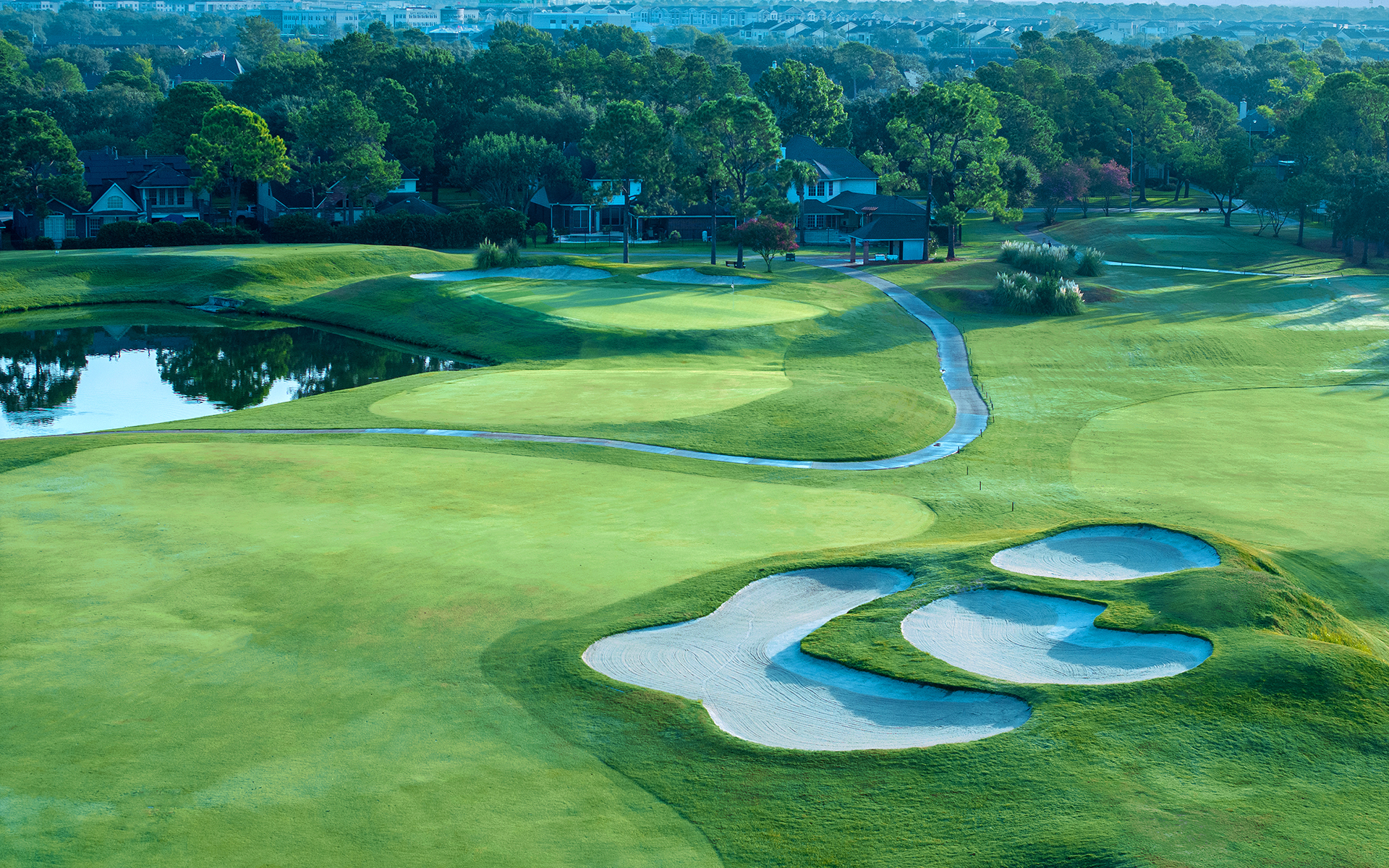 The Golf Course beckons golf enthusiasts with its captivating 18-hole championship layout, expertly crafted by the renowned duo of Bruce Devlin and Robert von Hagge. The course, set against the backdrop of a former rice field, boasts meticulously manicured fairways, undulating greens, and strategically placed bunkers that collectively pose a compelling challenge to golfers of all skill levels. Water features gracefully come into play on multiple holes, enhancing the scenic ambiance, while elevation changes throughout the course contribute to the excitement of the game. The Club at Falcon Point Golf Course stands out as a premier destination for those seeking both challenge and enjoyment in the Katy area.